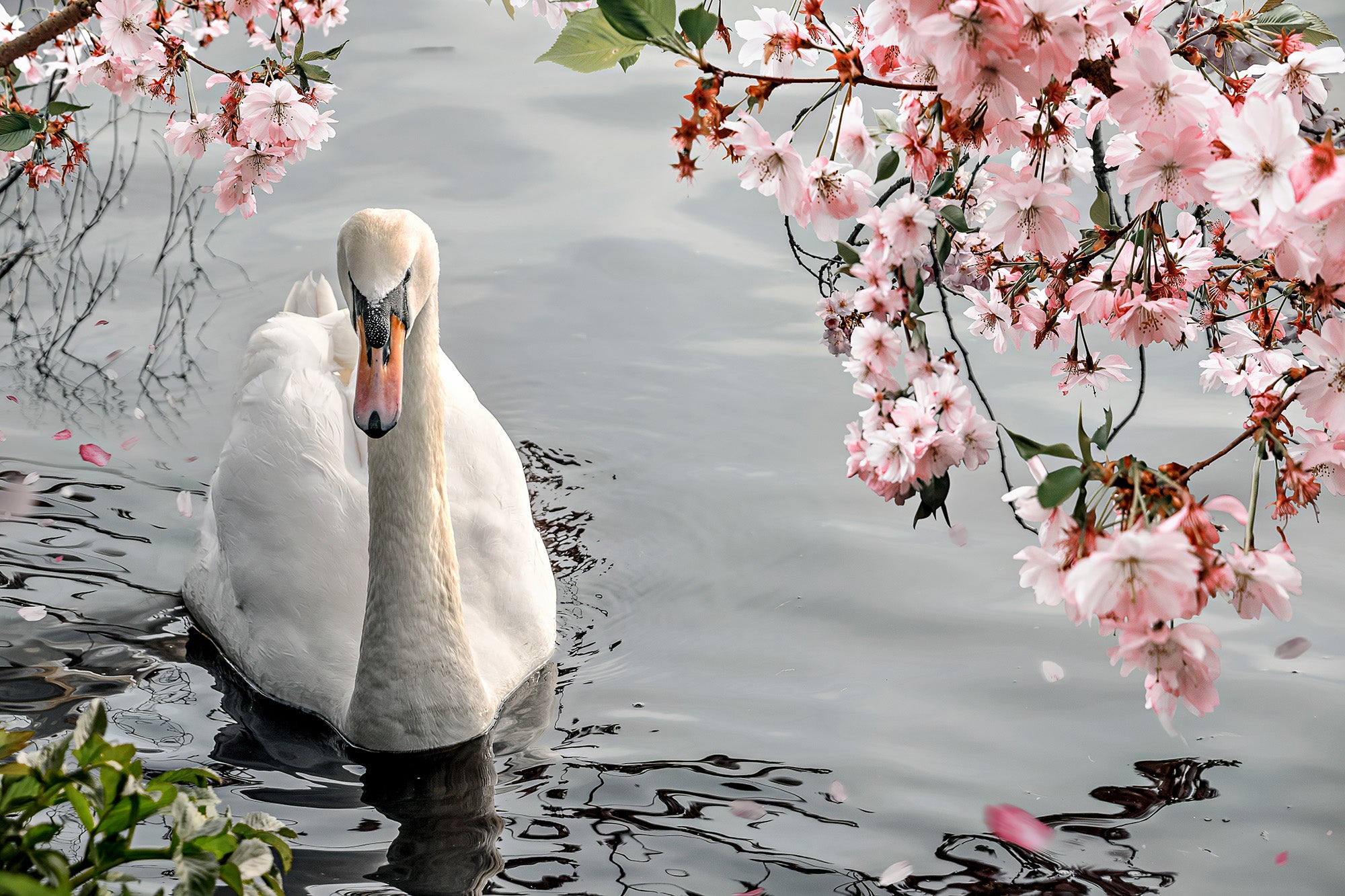 Alsterschwan unter Kirschblüten – Frühling auf hanseatisch
