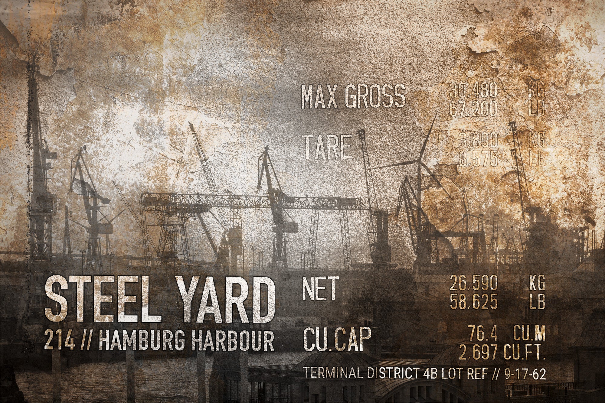 Der Schriftzug „STEEL YARD“ ist Bestandteil der Bildkomposition.